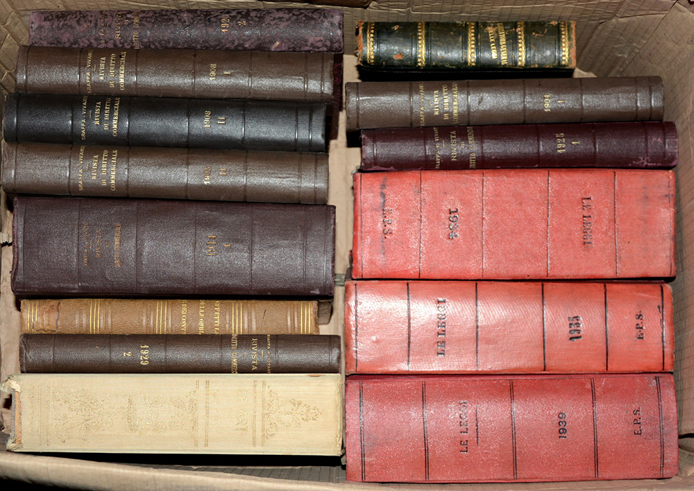 (Libri) Lotto di tre cartoni contenenti numerosi volumi di diverso argomento, fra cui diritto e letteratura (difetti)