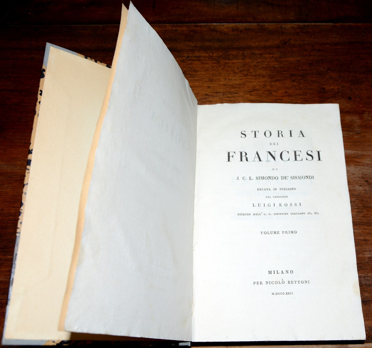 (Libri) Sismondi. "Storia dei francesi".Milano, Per NiccolÚ Bettoni, 1822-1823. 5 voll. in legatura moderna (difetti)