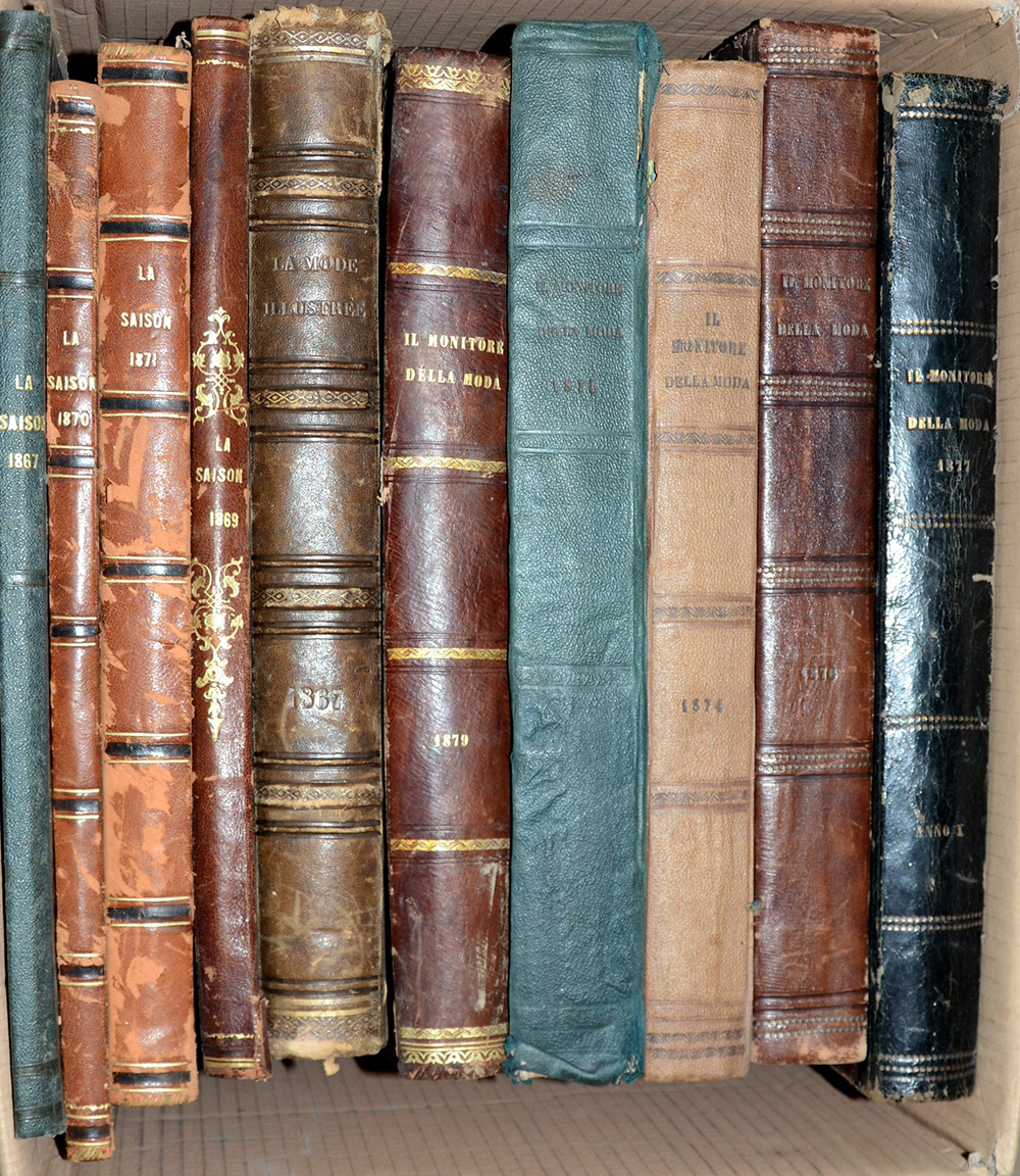(Libri) Cartone contenente svariate annate di giornali per signore, inerenti soprattutto la moda femminile, edite nella seconda met‡ del sec. XIX (difetti)