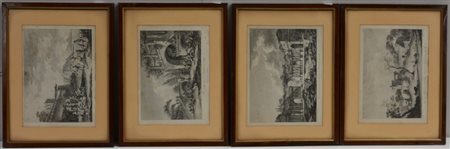 Gruppo di quattro incisioni raffiguranti vedute di citt‡ meridionali (difetti)