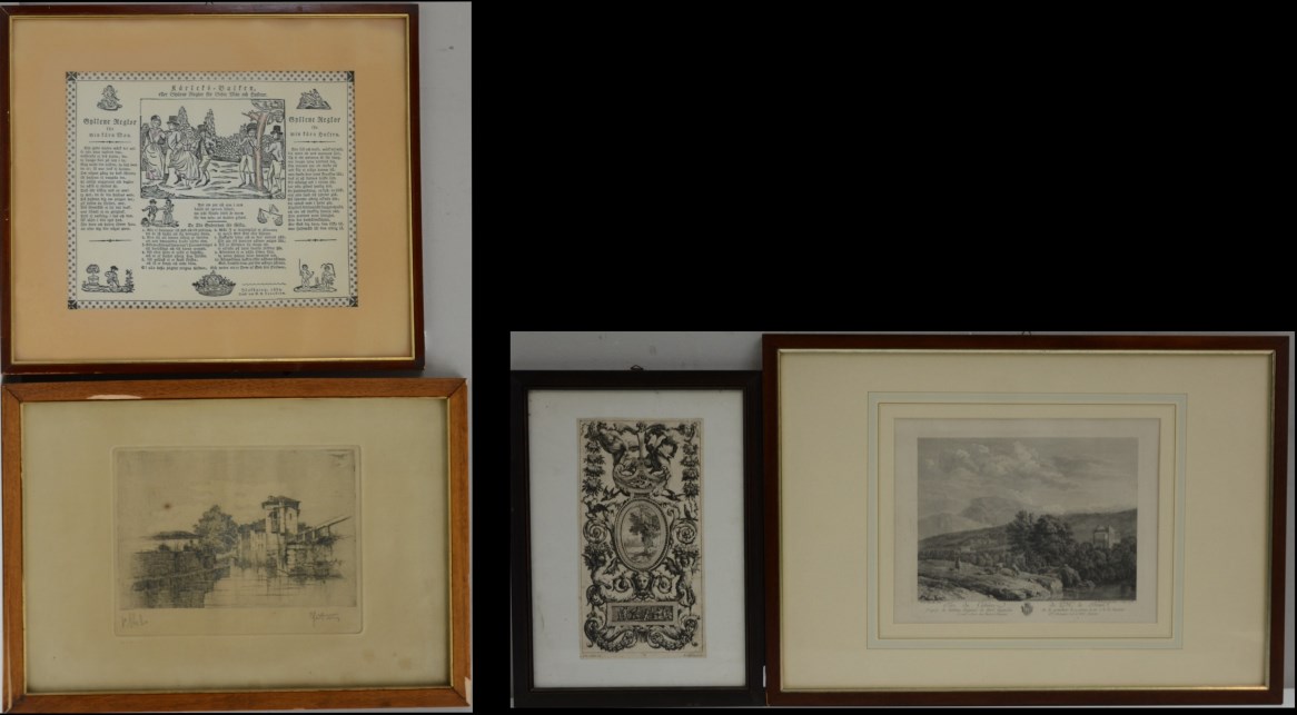 Lotto composto da tre incisioni ad acquaforte di diversa epoca, in cornici (difetti)