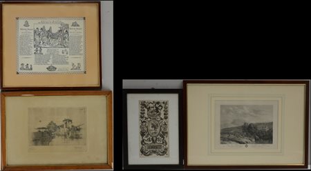 Lotto composto da tre incisioni ad acquaforte di diversa epoca, in cornici...
