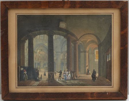 Da Giovanni Migliara "Basilica di San Lorenzo" Incisione a colori (cm 16x21,5)
