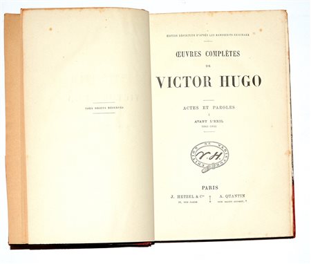 (Libri) Victor Hugo. Oeuvres completes. Edition dÈfinitive d'aprËs les manuscrits originaux. Paris, Hetzel-Quantin, [fine sec. XIX?]. 45 voll. In mezza pelle. Lotto in due cartoni (difetti)