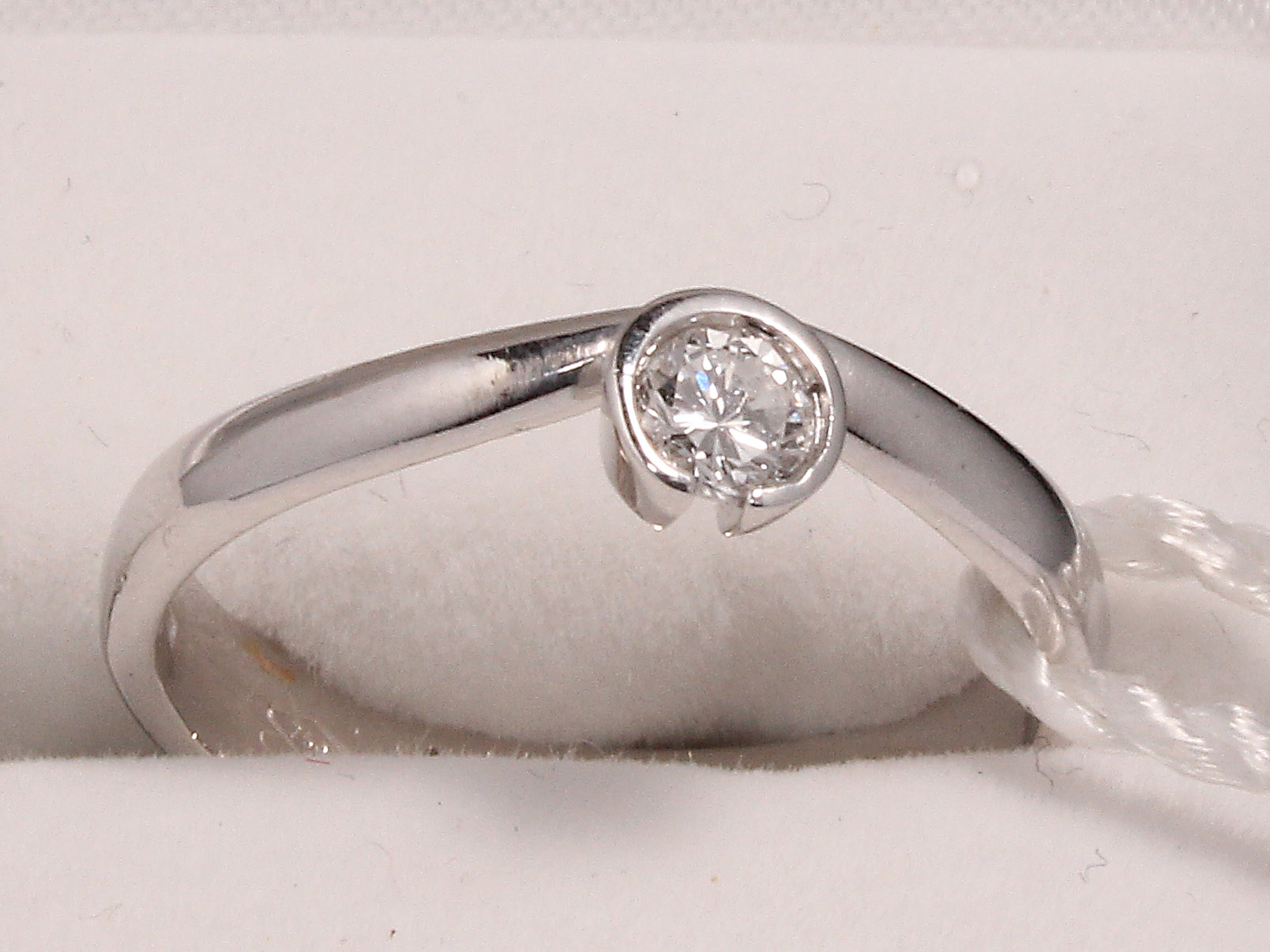 GIOIELLO ANELLO ORO BIANCO E DIAMANTI Anello in oro bianco 18 kt con diamanti Taglio brillante Peso complessivo 0,16 kt Colore H Gr 4,50