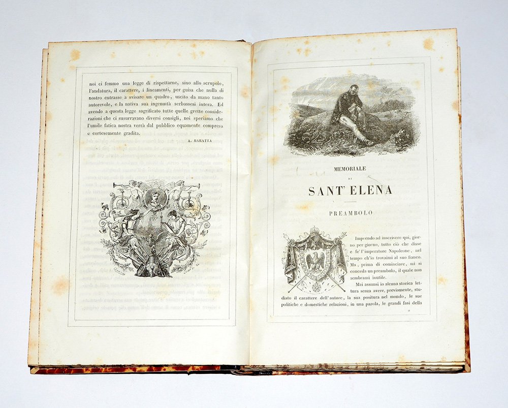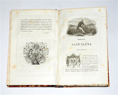 (Libri) Lotto di due opere: Las Cases. Memoriale di S. Elena... Torino, 1842-1844. 2 voll. in 4∞, con numerose incisioni. In mezza pelle. Histoire de Jules CÈsar. Paris, 1865-1866. 2 voll. in 4∞ piccolo. In mezza pelle (fioriture e gore in entrambe le opere)