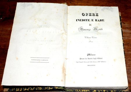 (Libri) Vincenzo Monti. Opere inedite e rare. Milano, Societ‡ degli editori,...