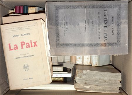 (Libri) Lotto composto da due cartoni contenenti numerosi volumi di argomento storico, fra cui la storia d'Italia e d'Europa nei secc. XIX-XX (difetti)