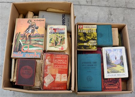 (Libri) Lotto di due cartoni contenenti numerosi libri di diverso argomento (difetti)