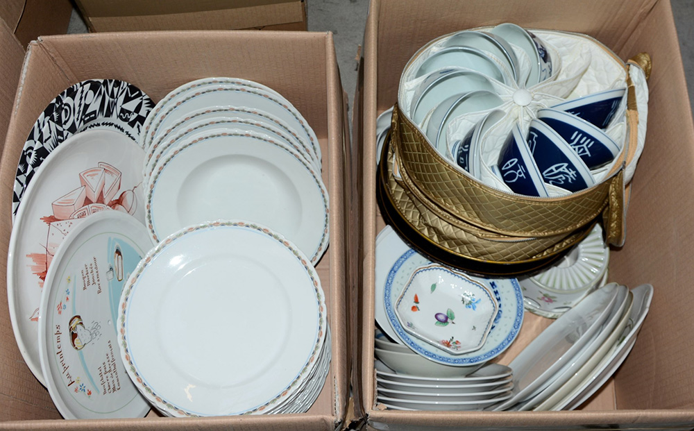 Lotto 2547 | Due cartoni contenenti oggetti in ceramica e vetro di diverso uso e fattura...