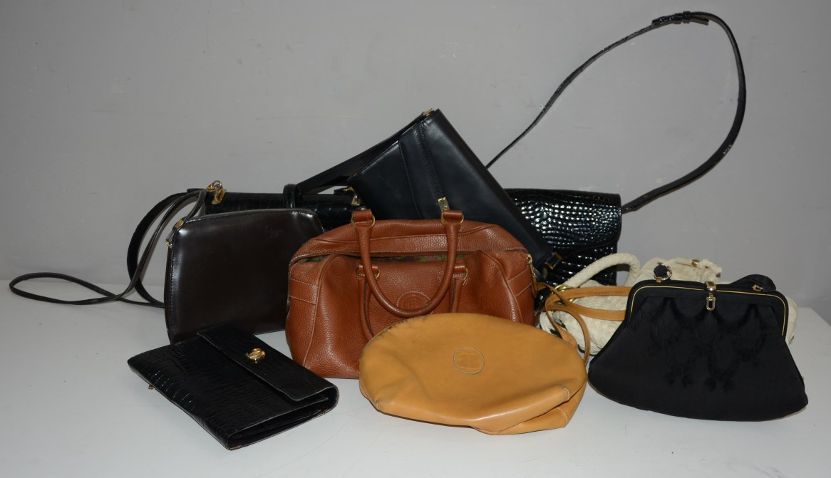 Cartone contenente numerose borse di varie misure e materiali (difetti)
