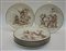 Gruppo di otto piatti in porcellana decorati in monocromia con figure e proverbi (d. cm 32)