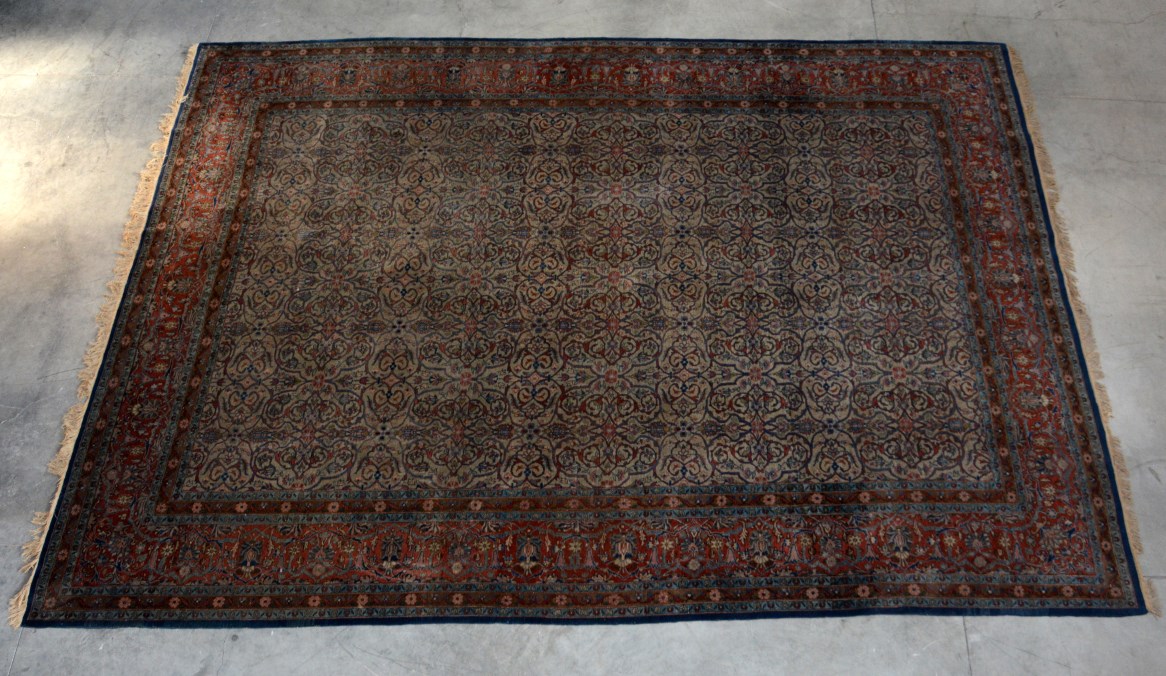 Tappeto Sarouk, Persia secolo XX. Disegno allover su fondo bianco (352x260) (difetti)