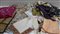 Lotto di due cartoni contenenti alcune sciarpe, guanti, scampoli di tessuto,...