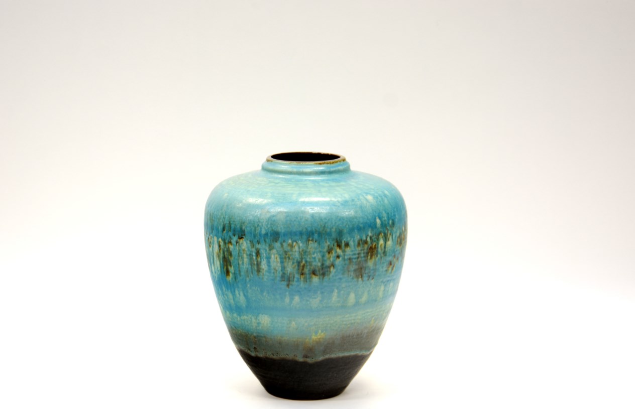 Manifattura tedesca, sec. XX. Vaso in porcellana con invetriatura turchese....