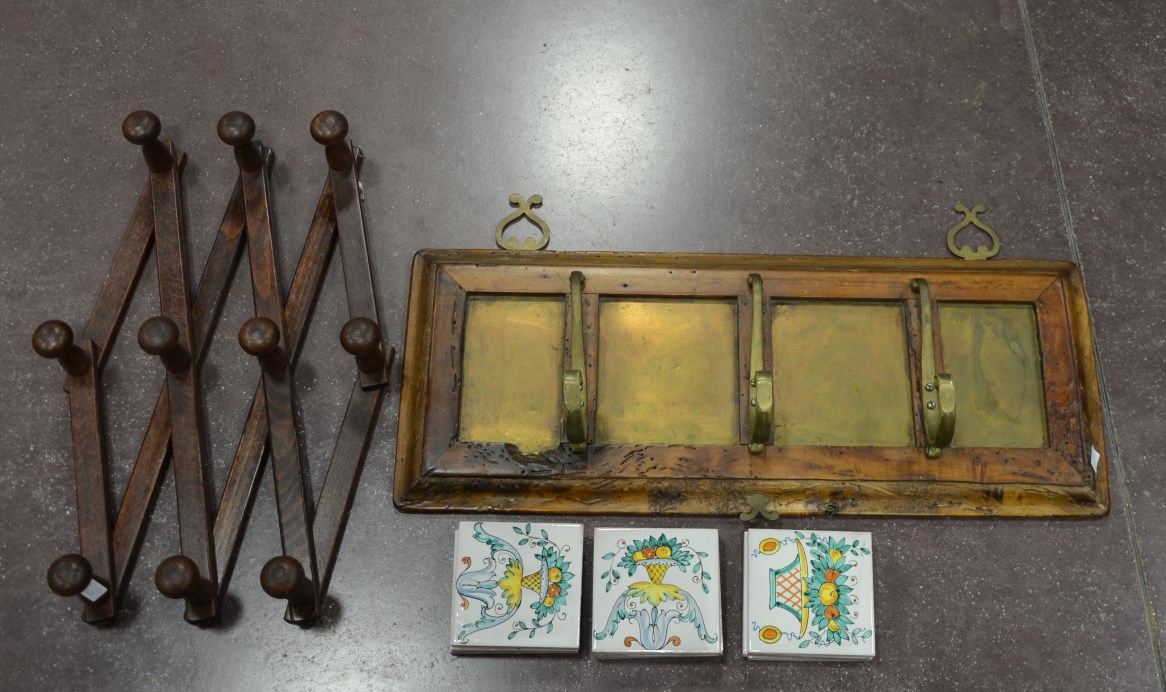 Lotto composto da alcune piastrelle e due appendiabiti di diversa fattura...