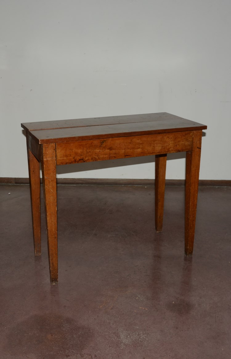 Tavolo scrittoio ad un cassetto nella base e quattro gambe sagomate (cm 95x80x46) (difetti)
