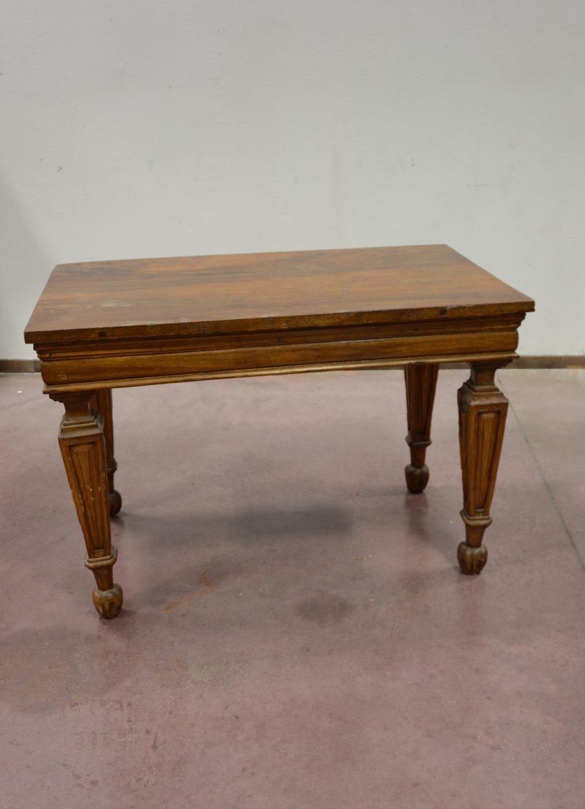 Tavolo scrittoio di forma rettangolare con quattro gambe troncopiramidali terminanti con piedini stilizzati (cm 106x70x64) (difetti e restauri)