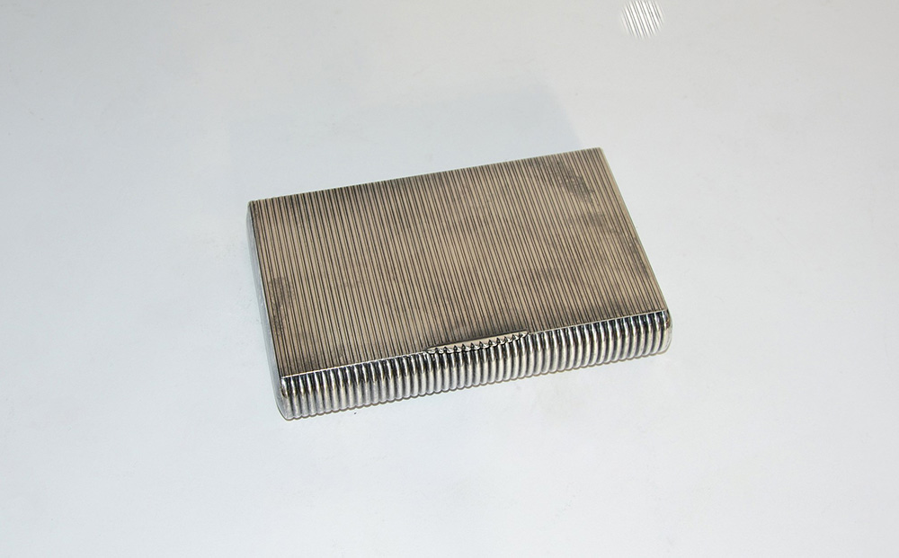 Scatola rettangolare in argento con superficie scanalata (cm 14,5x9,5 ca) (gr. 300) (lievi difetti)