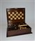 Scatola da gioco con scacchiera, scacchi e porta carte decorati con semi e smalto