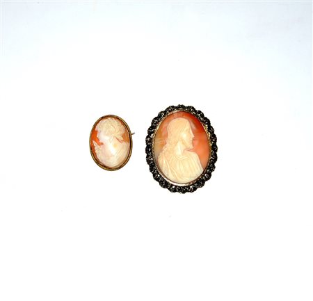 Lotto composto da due cammei di cui uno grande con cornice in oro 18 KT e uno piccolo con cornice in oro 9 KT