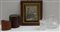 Lotto composto da due scatole in vetro, una in teak e una lastra ad incisione...