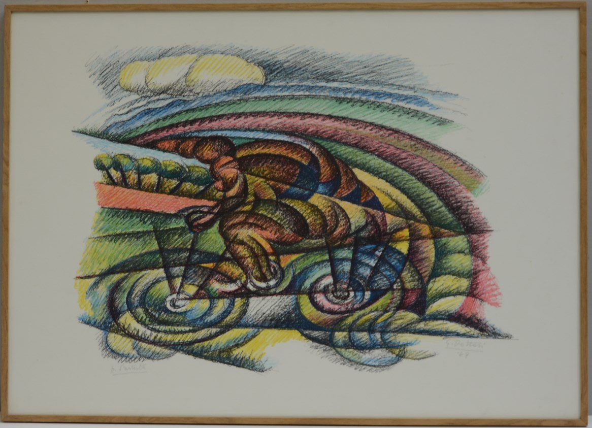 Gerardo Dottori Perugia (1884- 1977) "Senza titolo" 1969, litografia (cm 50x70) firmata, datata e numerata in basso. In cornice