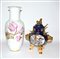 Lotto composto da un vaso in porcellana decorato con foglie e un vaso...