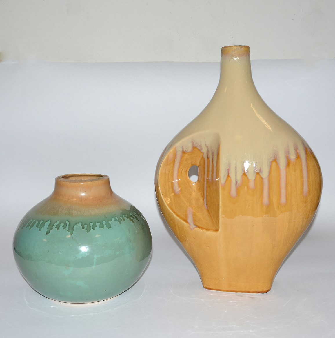 Lotto composto da due vasi in ceramica smaltata nei toni del verde e del...