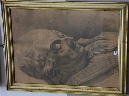 Ignoto "Studio per figura" tecnica mista su carta (cm 65x48) iscritto "E. Sollichan" e datato 1889. In cornice antica