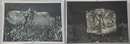 Mattia Moreni Pavia (1920- Brisighella (RA) 1999) "Composizioni astratte" lotto composto da due litografie, misure e tirature diverse. In cornici