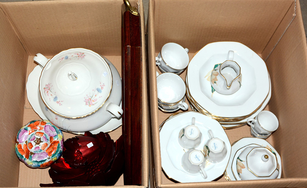 Lotto di due cartoni contenenti numerose parti di servizio per la tavola (difetti)