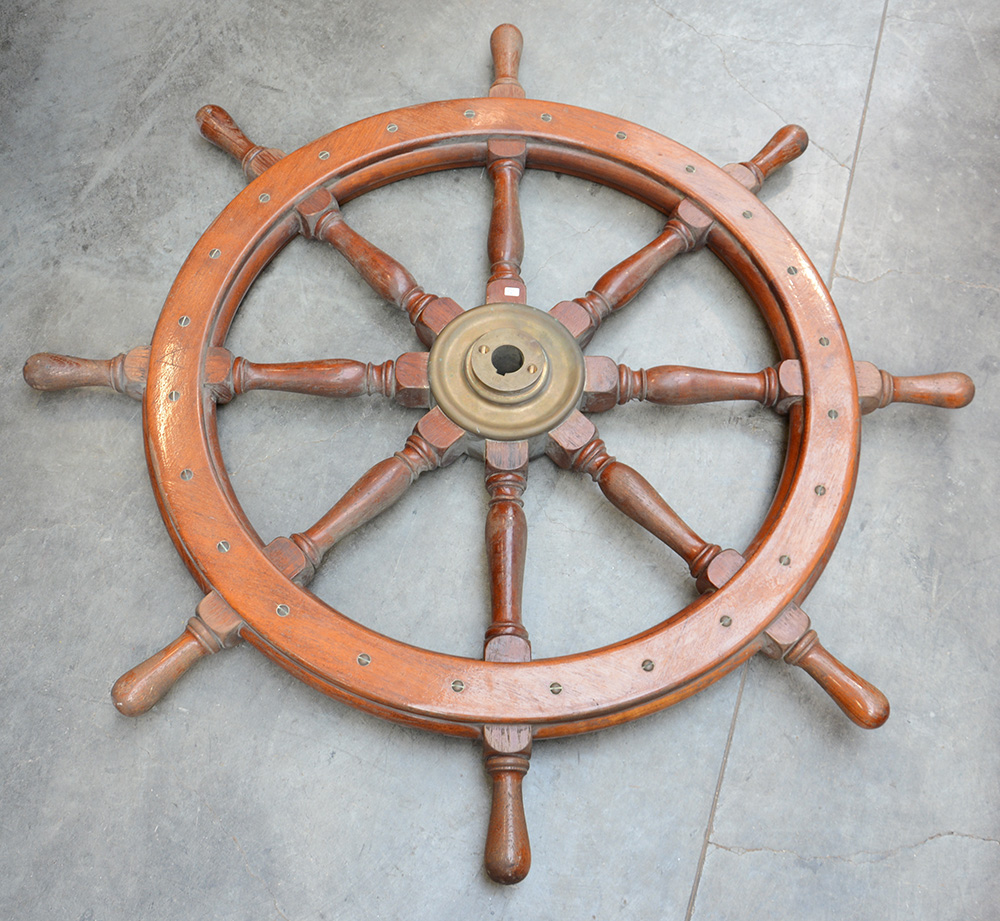 Lotto 2816 | Timone da nave in legno con perno in metallo (d cm 105) (difetti)