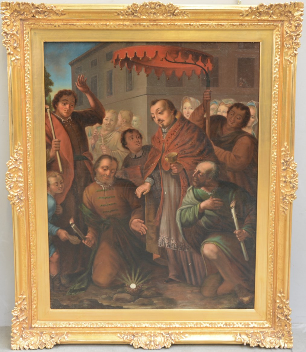 Ignoto "Miracolo Eucaristico" olio su tela (cm 90x70) secolo XIX. In cornice