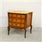Piccolo comÚ di forma sagomata intarsiato e filettato, a tre cassetti e con...