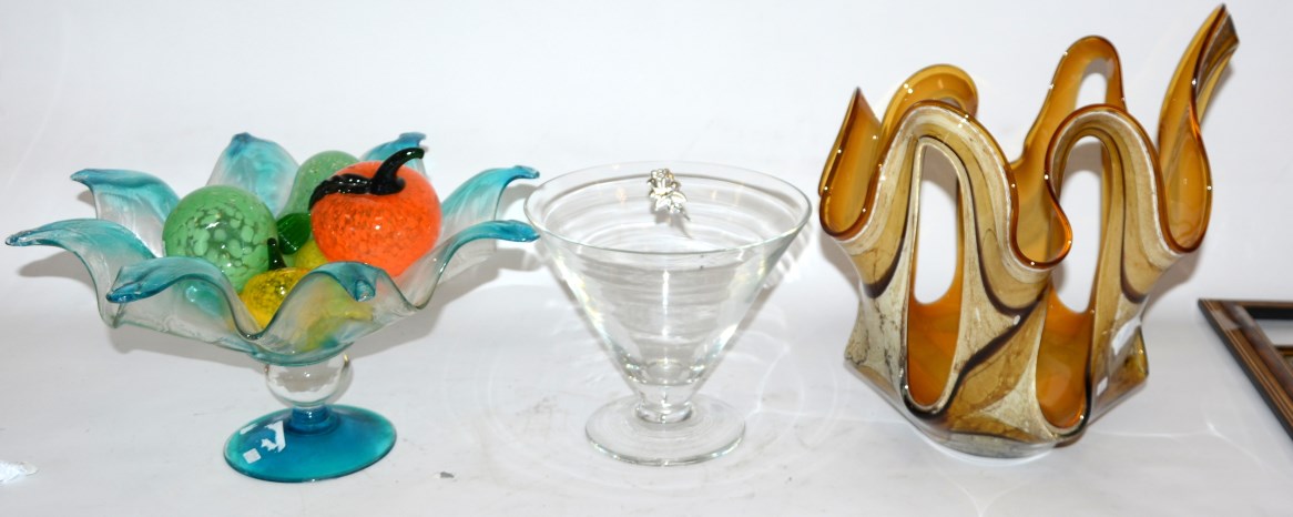 Lotto composto da tre centrotavola e otto frutti in vetro di dimensioni...