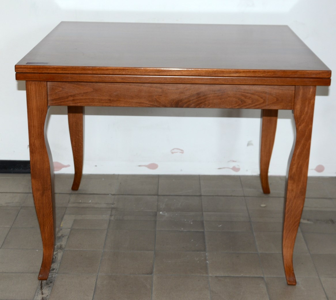 Lotto 2874 | Tavolo quadrato moderno in legno dolce con gambe mosse (cm 100x77x100) (difetti)