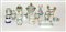Lotto composto da numerosi modellini di suppellettili in porcellana policroma...