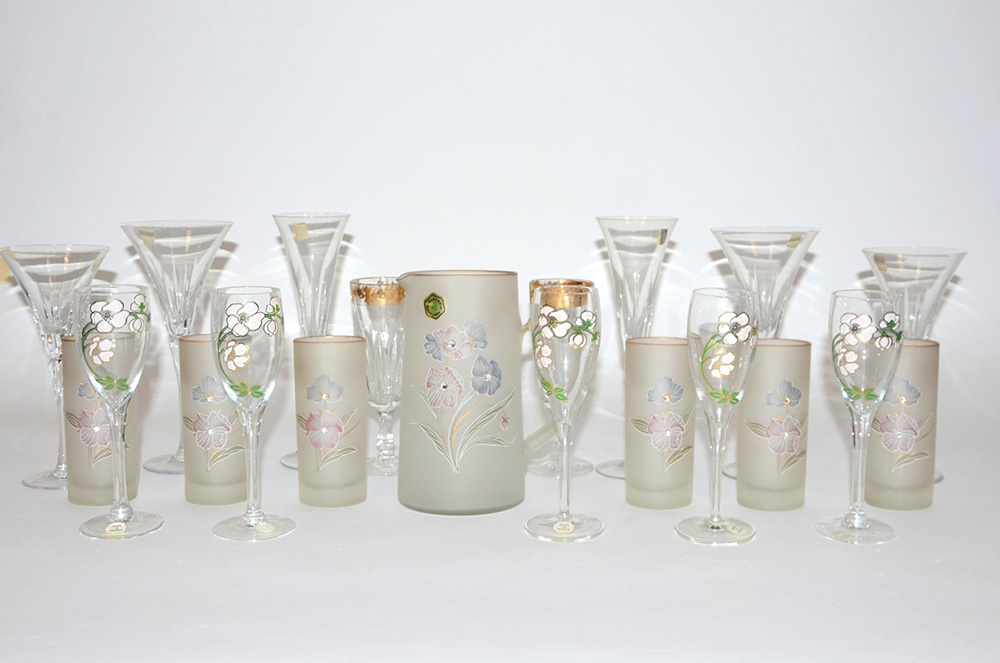 Lotto composto da una parte di servizio di bicchieri in cristallo marcati...