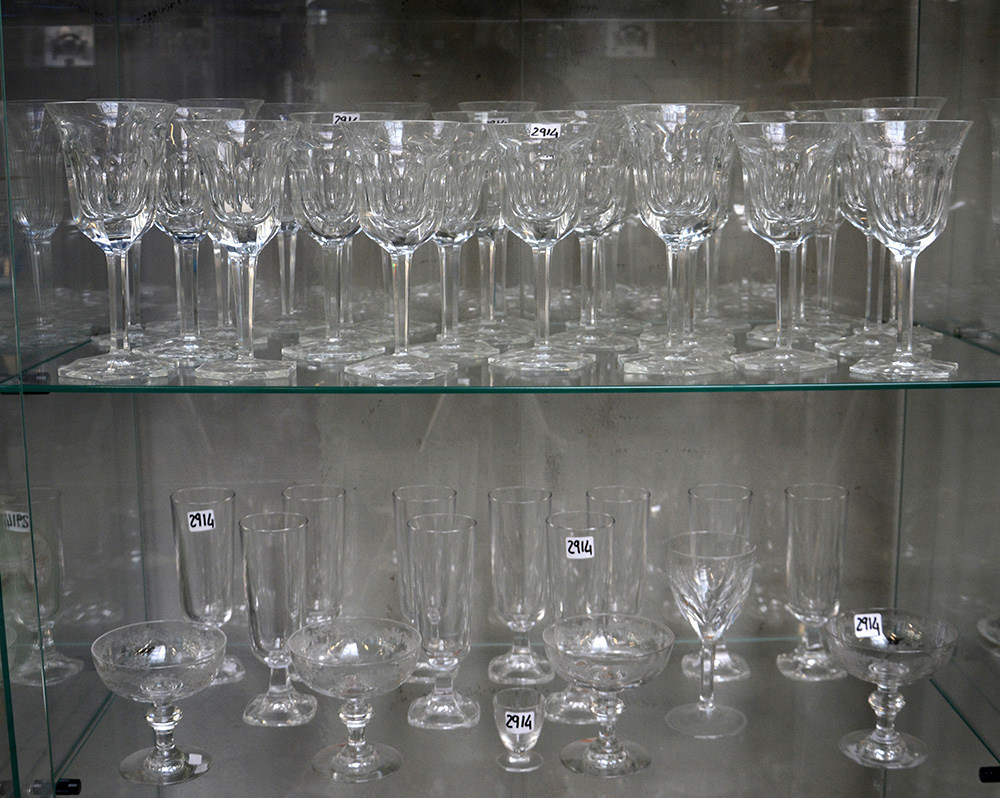 Lotto composto da numerosi bicchieri e calici di diverse misure e decoro (difetti)