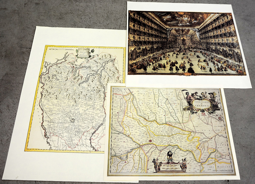 Cartelletta contenente un'opera di Riccardo Stoppa raffigurante Venezia e alcune stampe relative ad architetture e territori lombardi (difetti)