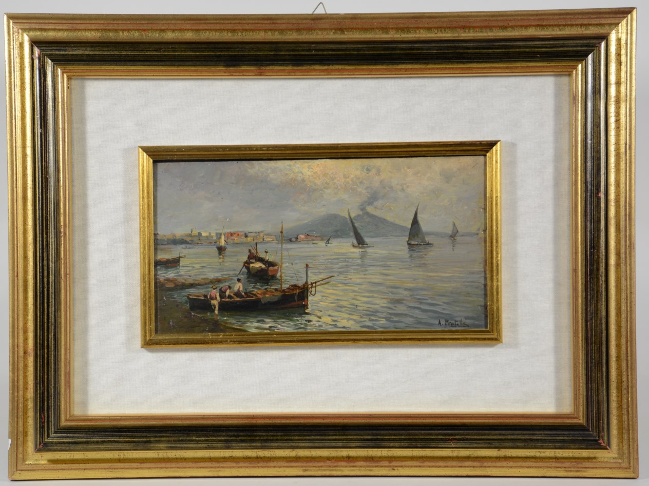 Pratella A. "Pescherecci", olio su tavola (cm 17x31) firmato in basso a destra, in cornice (difetti)