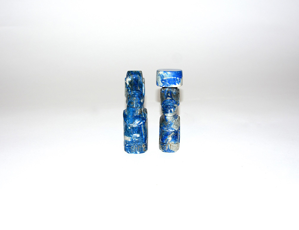 Lotto di due sculture in lapislazzulo in stile precolombiano, sec. XX (h max cm 12) (difetti)
