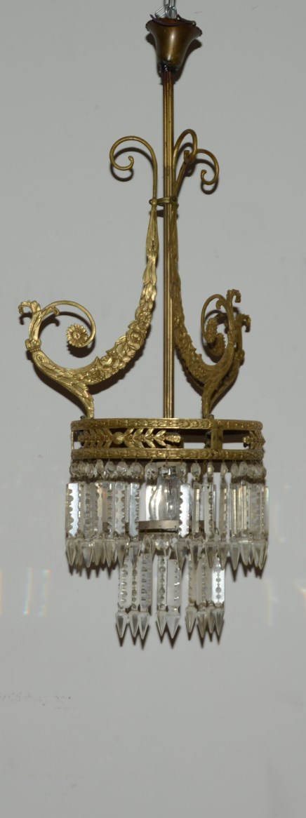 Lampadarietto ad una luce in metallo dorato decorato a motivi vegetali