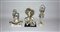 Lotto di tre sculture in metallo argentato raffiguranti personaggi femminili...