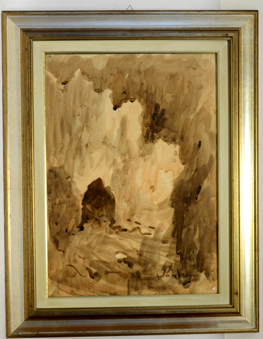 Falzoni Giulio Marmirolo (MN) (1900- Milano 1978) "Composizione", tecnica mista su cartone (cm 69,5x50) firmato in basso a destra, in cornice (lievi difetti)