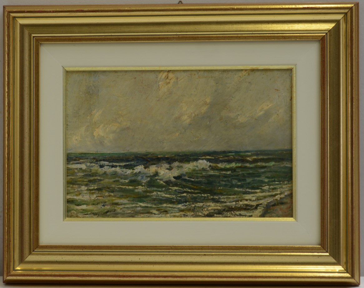 Ignoto "Mare in Burrasca" olio su cartone (cm 20,5x30,5) Siglato in basso a sinistra. In cornice
