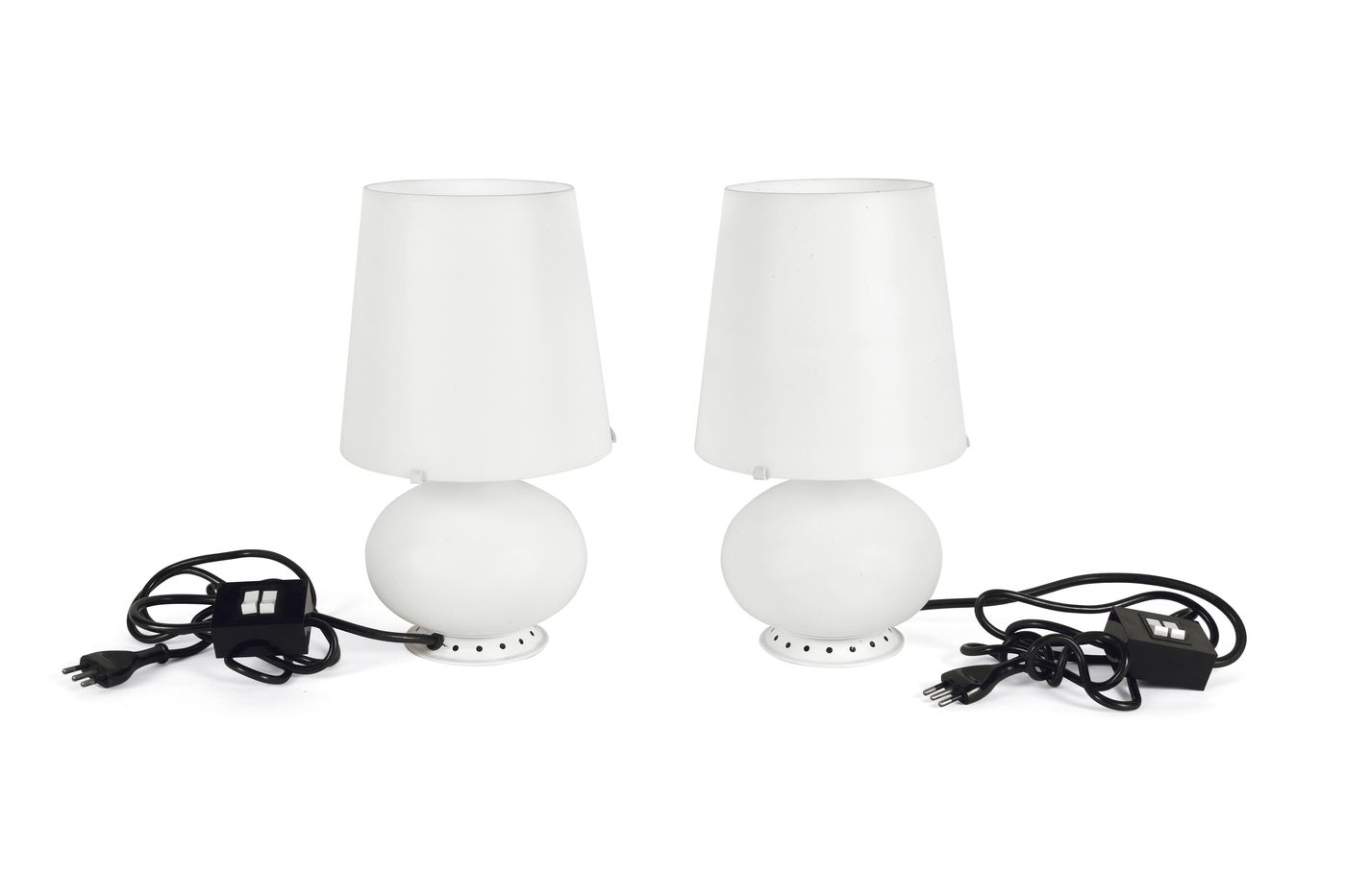INGRAND MAX - Due abat jour in vetro opalino sabbiato. Prod. Fontana Arte...