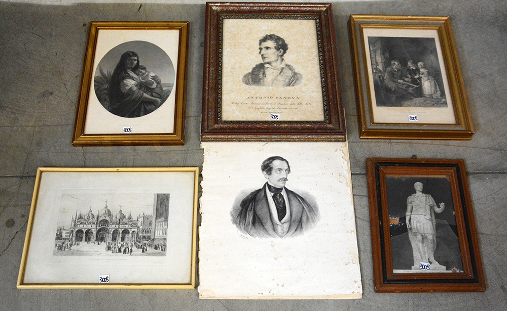 Lotto composto da sei stampe di autori e soggetti diversi di cui cinque in cornici