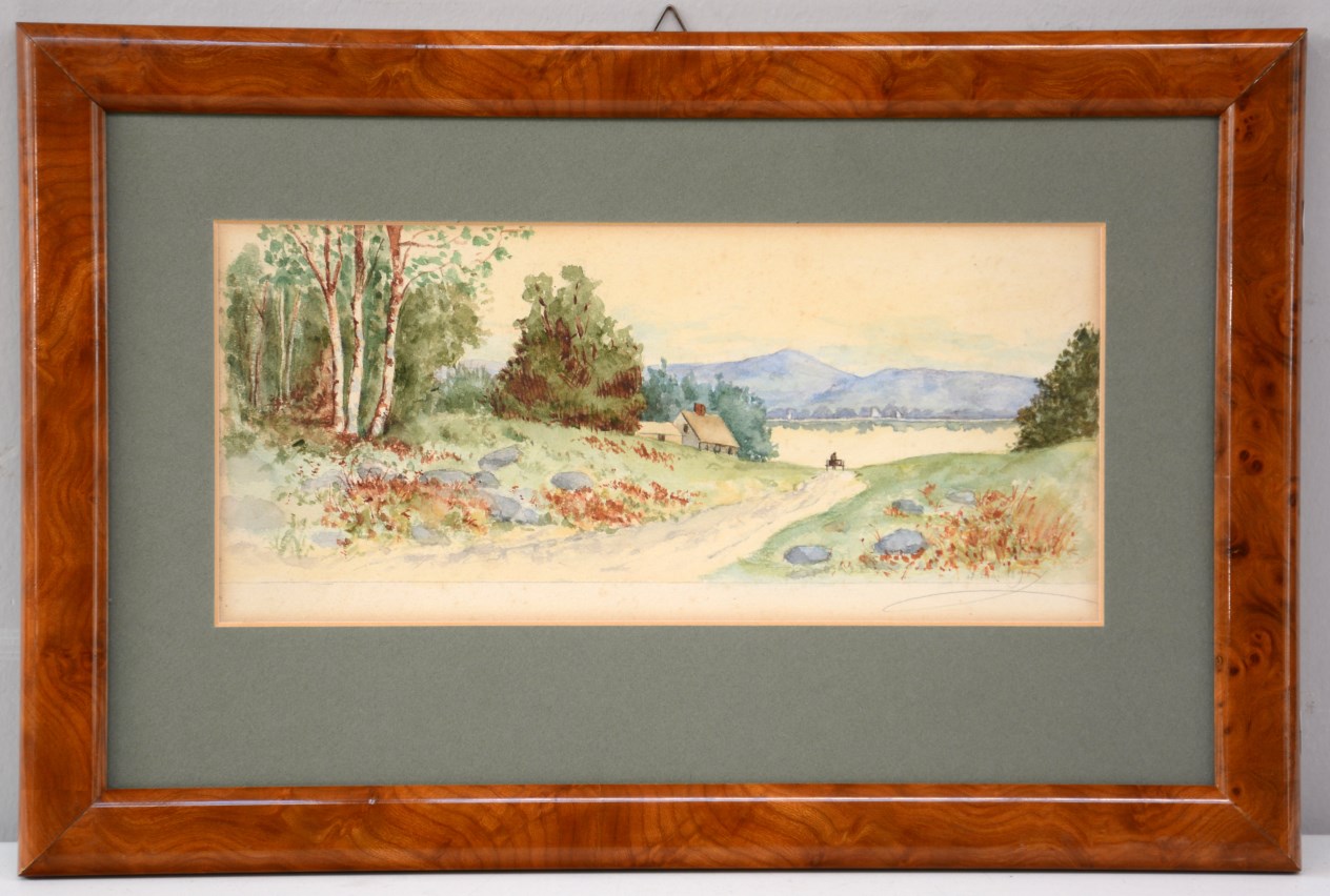 Firma indecifrata "Paesaggio campano" acquarello (cm 15x30). Firmato e datato 1896 in basso a destra. In cornice